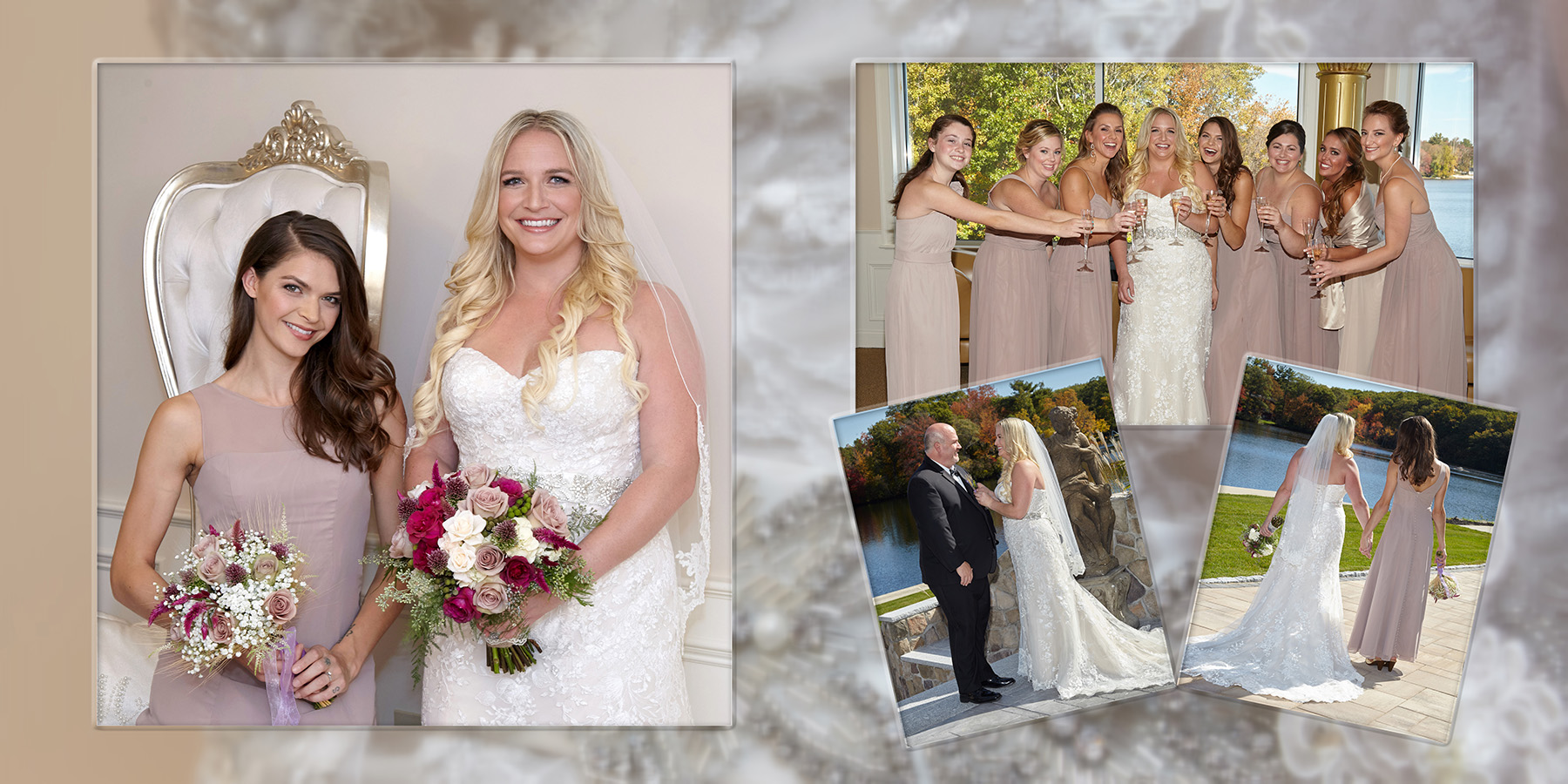 Pricing includes up to 7 hours of photographers time, expert custom album design, and a completed personalized leather wedding album. Pricing starts at $2599.00